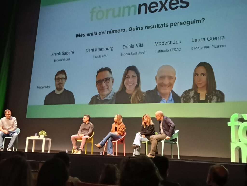 Avui la nostra escola ha participat al Fòrum Nexes, una jornada de matemàtiques organitzada per Innovamat que reuneix centres educatius amb la voluntat de compartir experiències, inquietuds i mirades sobre com transformar l’aprenentatge de les matemàtiques. Ha estat un espai d’intercanvi i reflexió que ens ha permès aturar-nos, pensar i revisar la nostra pràctica educativa amb una mirada crítica i constructiva.